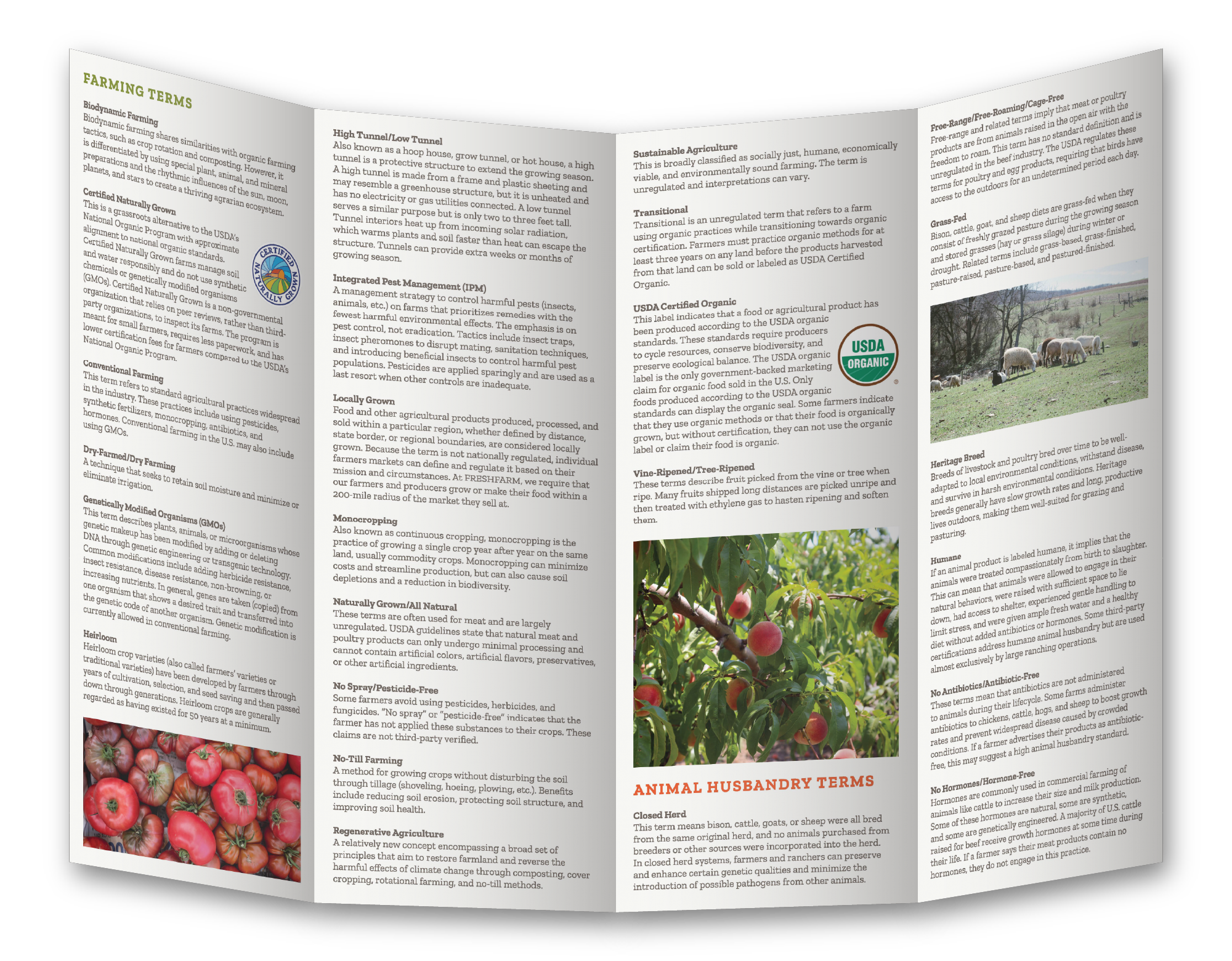 They reached out to DesignChef a bit after seeing our work for Common Grain Alliance to design “Words To Eat By”, a brochure explaining a number of terms used when describing various types of food products found at farmers markets. We designed a 4 panel brochure that perfectly matched their brand guidelines, making use of painterly style illustrations provided by the client.